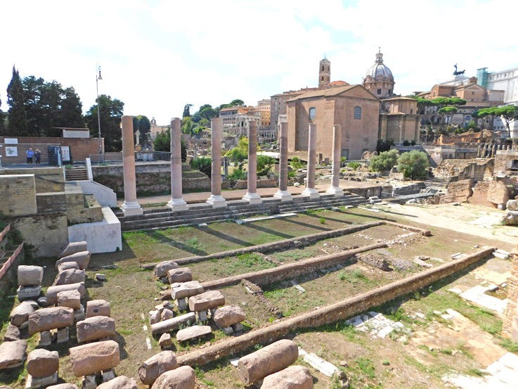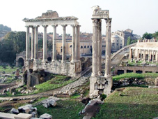 Ende des Forum Romanum. Durch den mittleren Bogen führt die Via Sacra in