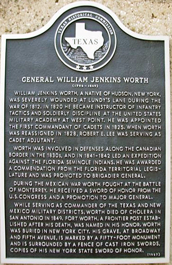 Militärbezirke Texas und New Mexico starb Worth 1849 in San Antonio an Cholera.