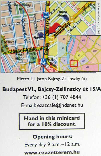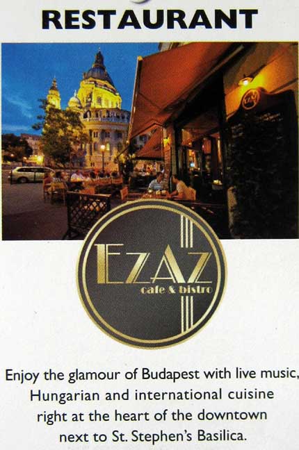 In Budapest gibt es an jeder Ecke kleine Bars und Restaurants, die gutes Essen servieren. Von Restaurants, die Touristenmenüs anpreisen, sollte man Abstand nehmen, das diese zu teuer sind. Auch kleine und unscheinbare Restaurants können sehr gut sein. Auf dem Burgberg kann man ebenfalls gut essen, muss aber die höheren Touristenpreise in Kauf nehmen. |